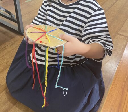 上手く均等に編むことに苦戦しているお友達もいましたが、とても集中して頑張っていました。