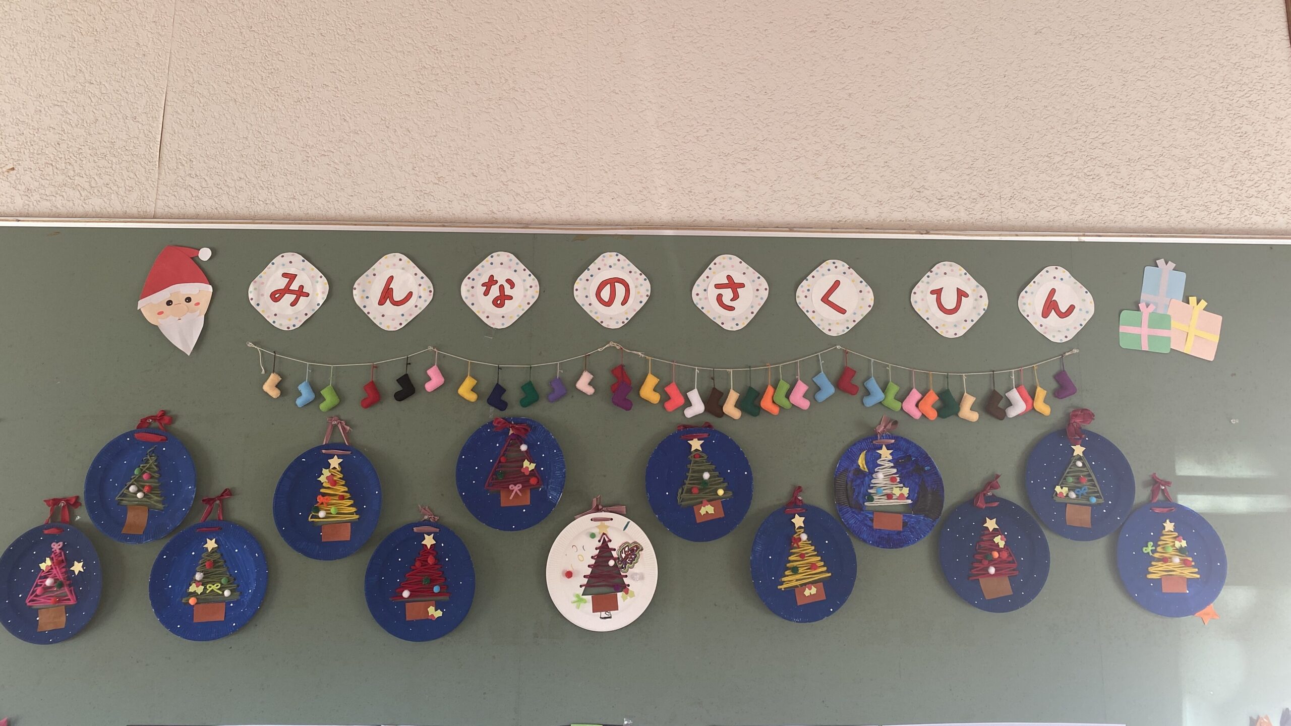 掲示板には色とりどりのクリスマスツリーが並んでいます。