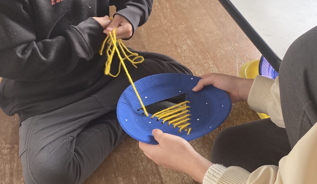 開けた穴に好きな色の毛糸を通すとツリーができます!