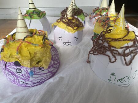 こどもたちも、どんな顔にしようか悩みながら制作していました。