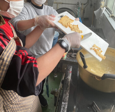 親子丼作りと並行して、お味噌汁作りも行いました。