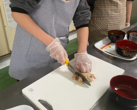 2月11日 子どもたちのリクエストから、親子丼とお味噌汁の調理実習を行いました。