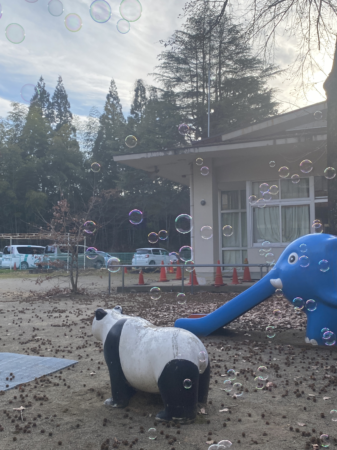 園庭がしゃぼん玉だらけになって、とても綺麗でした。
