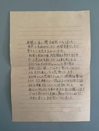 先日、当施設を卒業された児童のお母様より、一通の温かいお手紙をいただきました。